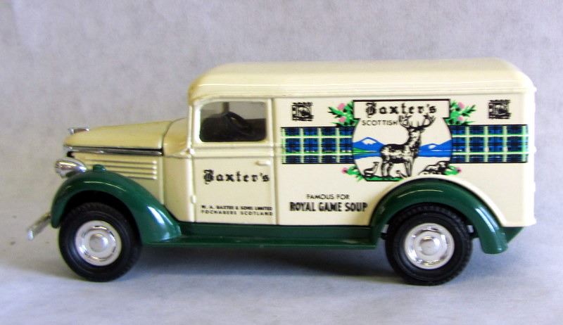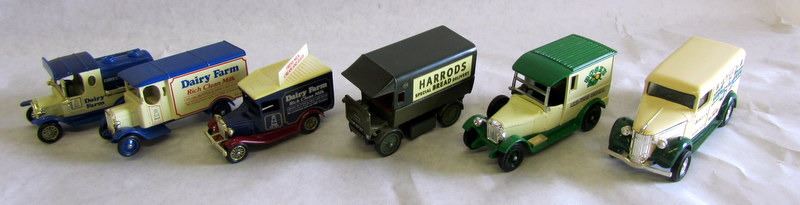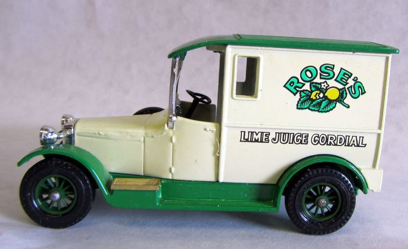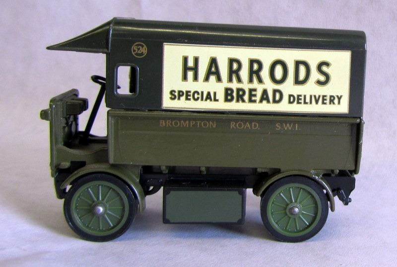 3 "GRADE A" VEHICLES, A TANKER, VAN, AND CAR, ALL MADE BY LLEDO. HARRODS SPECIAL BREAD DELIVERY 1919 WALKER VAN, MADE BY MATCHBOX. BAXTERS 1937 GMC VAN, MADE BY MATCHBOX. ROSES 1927 TALBOT VAN, MADE BY MATCHBOX.