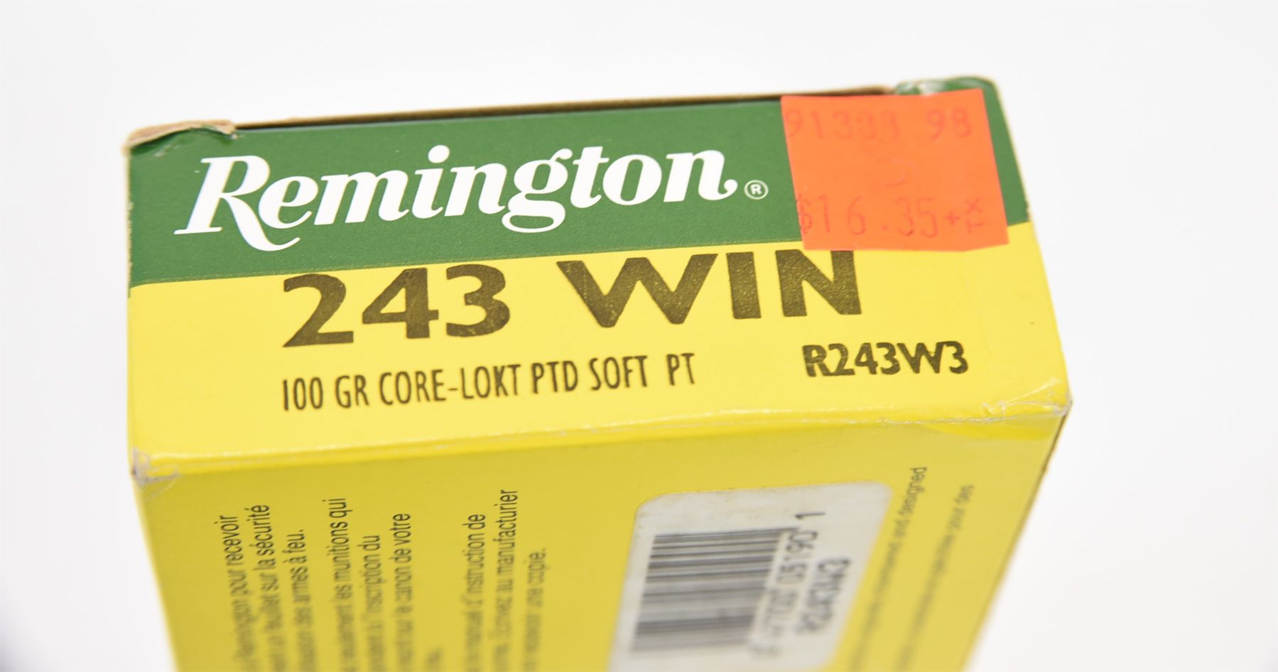20 rounds Remington High-velocity 243 Win 100gr Core-Lokt pointed soft point ammunition.