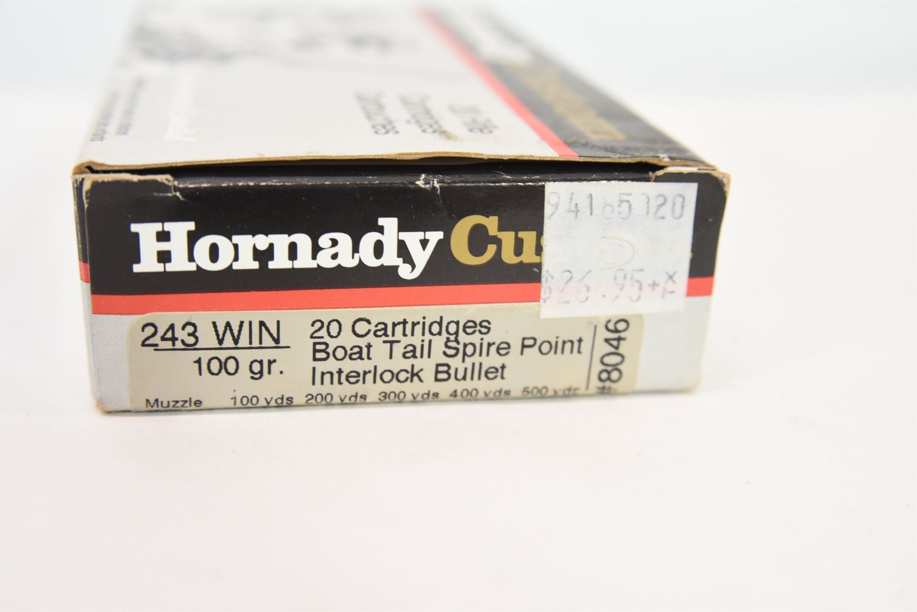 20 rounds Hornady Frontier 243 Win 100gr boat tail spire point interlock ammunition.