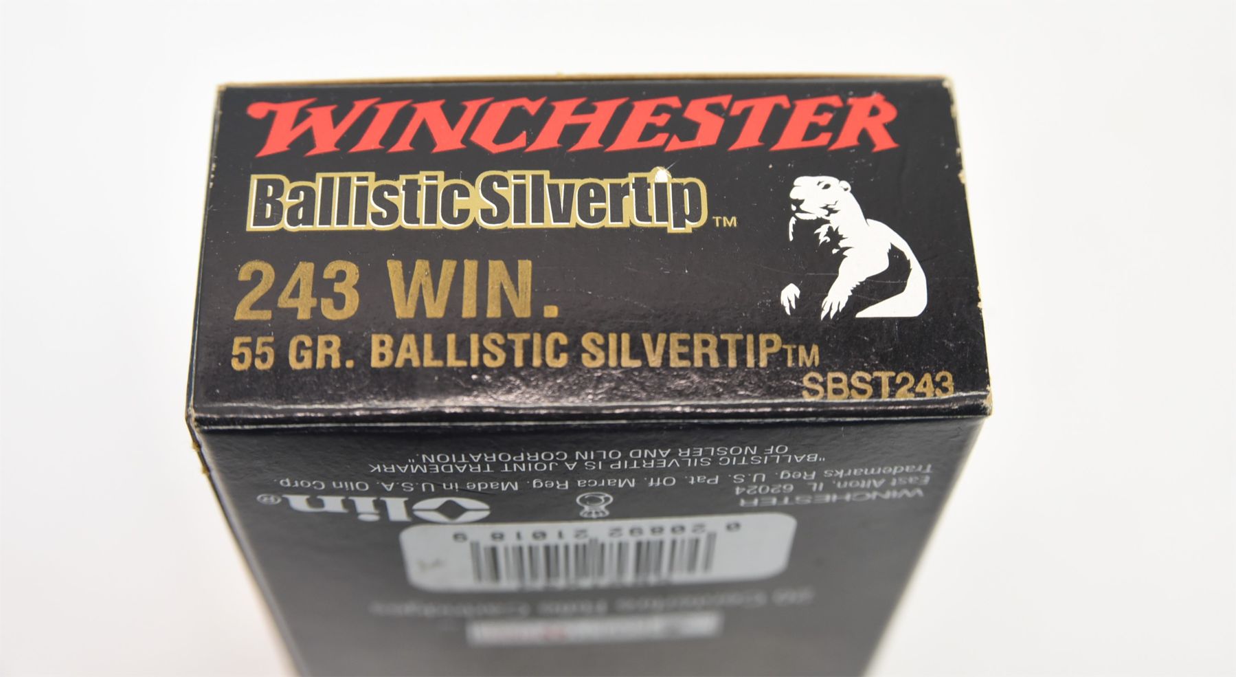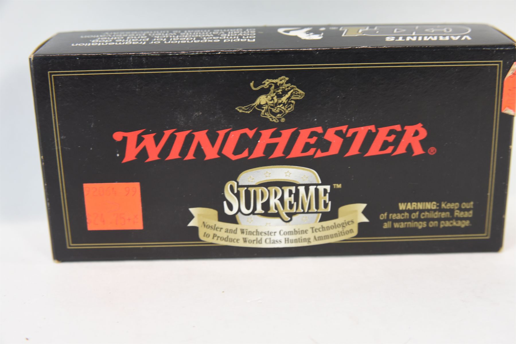 20 rounds Winchester Supreme 243 Win 55gr ballistic Silvertip ammunition.