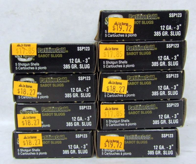 9 FULL 5 RND BOXES WINCHESTER 12 GAUGE 3 INCH SABOT SLUGS.