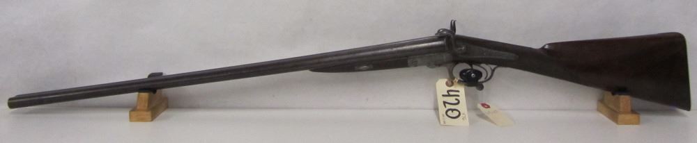 NON-RESTRICTED, 12GA, 29.5" DAMASCUS BARREL WITH DOUBLE ENGRAVED RECIEVER, WOOD HAS TYPICAL AGE BRUISES NO CRACKS, BARREL PATINAED WITH AGE, BORE IN GOOD CONDITION.