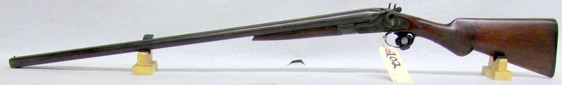 NON-RESTRICTED, SIDE-BY-SIDE, 12 GAUGE, 30 INCH BARRELS, SN 390558. BORES ARE PITTED. BLUEING HAS TURNED BROWN. STOCK HAS SCRATCHES AND DENTS.