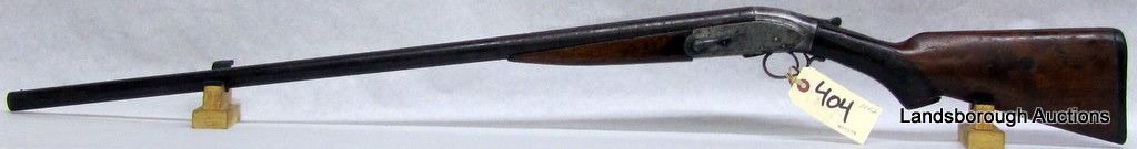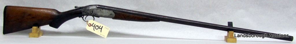 NON RESTRICTED SINGLE SHOT 12GA CHOKE BORED, 814MM DAMASCUS BARREL. WOOD IS SCRATCHED AND DINGED, BLUING IS PITTED, BORE IS PITTED.