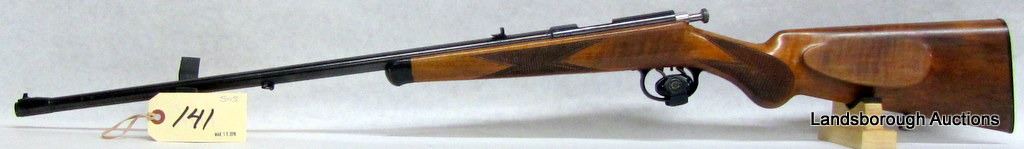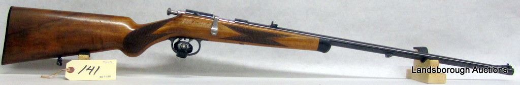 NON-RESTRICTED, SINGLE SHOT, 22LR, 22 " BARREL, SN 30674. WOOD HAS SOME SCRATCHES AND MARKS, BLUING HAS A COUPLE MARKS, BORE VERY GOOD.