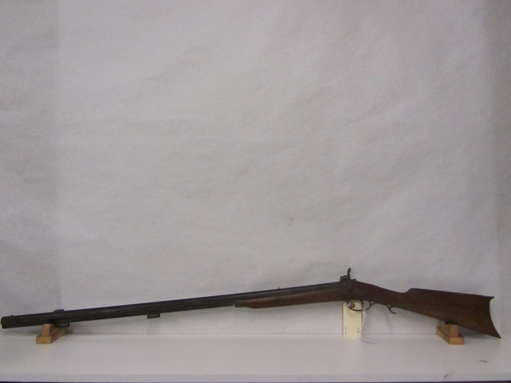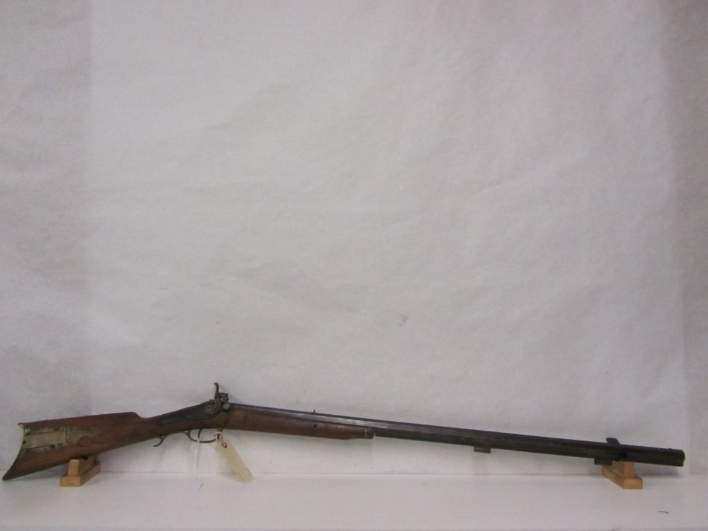 ANTIQUE 50CAL, HEX Bbl, WOOD CRACKED BADLY, BARREL RUSTED HEAVILY WITH OBSTRUCTION 10.5" DOWN BARREL.