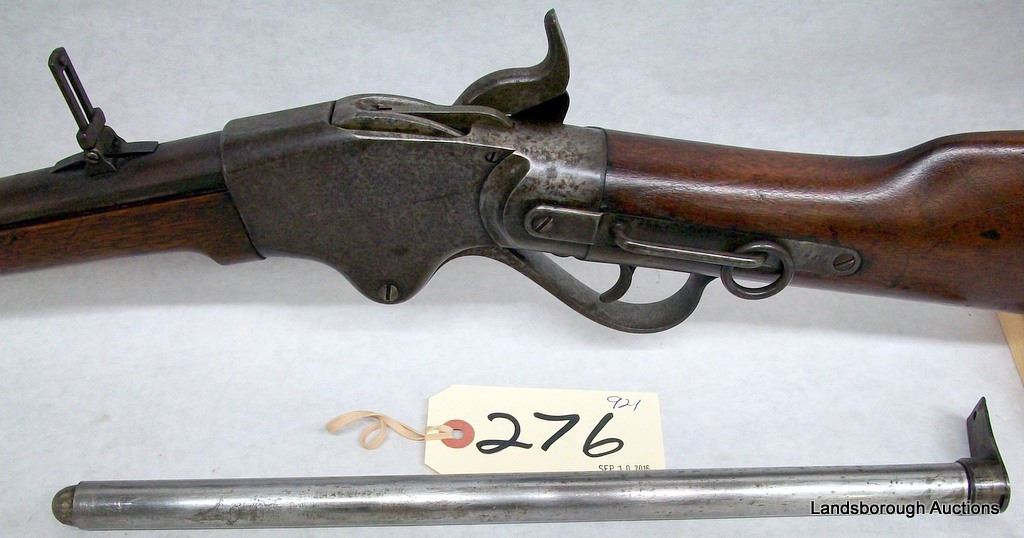 ANTIQUE, LEVER ACTION, 56-50 SPENCER RF (BORE MEASURES .499), 20" BARREL, SN 274. WOOD HAS DENTS AND MARKS, ESA CARTOUCHE (ERSKINE S ALLIN) VISIBLE ON LEFT WRIST, BLUING IS BROWN, BORE HAS A LARGE PIT MARK OTHERWISE GOOD RIFLING.
