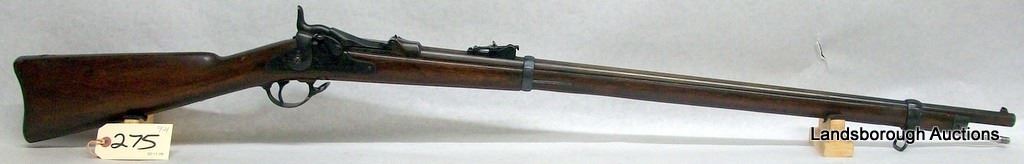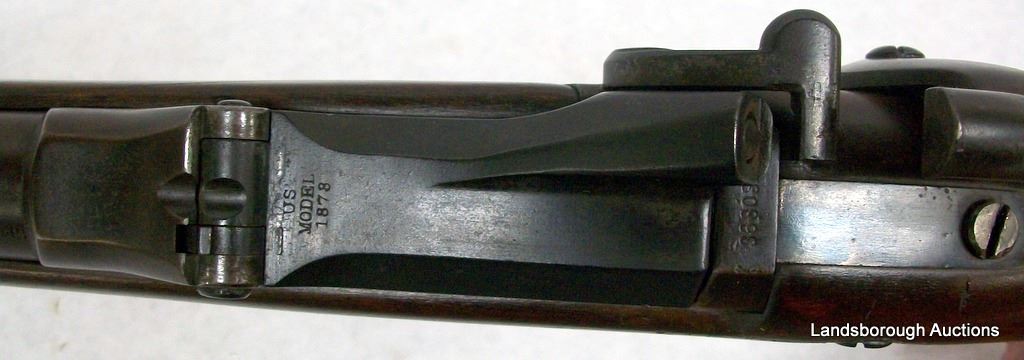 ANTIQUE, SINGLE SHOT, 45-70 GOVT, 32" BARREL, SN 368083. WOOD HAS A COUPLE DENTS AND MARKS, BLUING IS FADED AND TURNING BROWN, BORE IS STAINED, RIFLING PROMINENT.