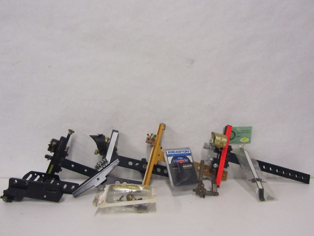 6 RECURVE SIGHTS, 2 ARROW RESTS, V-BAR CONNECTOR, SOME SMALL BOW FASTENINGS.