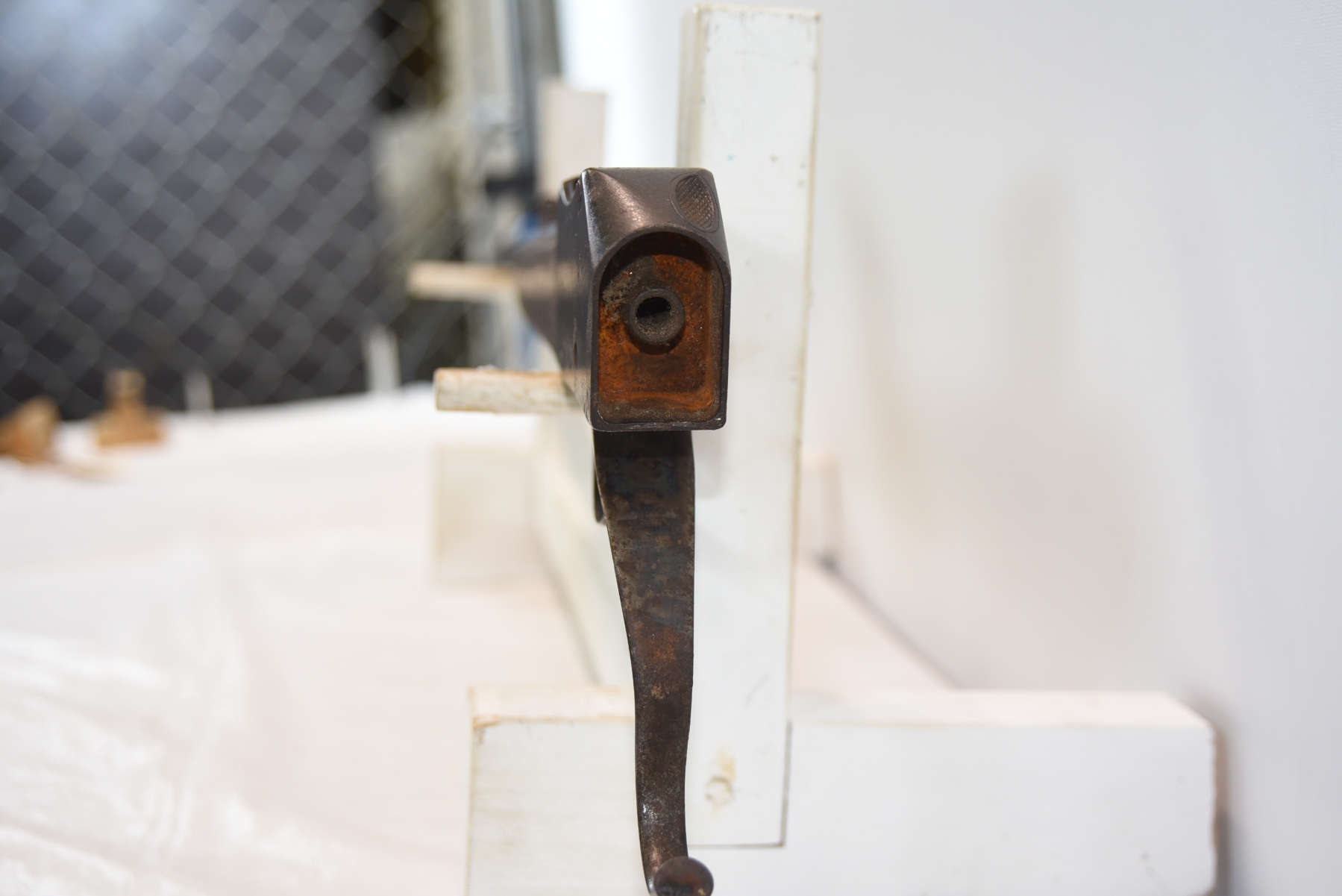 Metal shows patina, finish wear, pits, rust throughout; condition is poor.