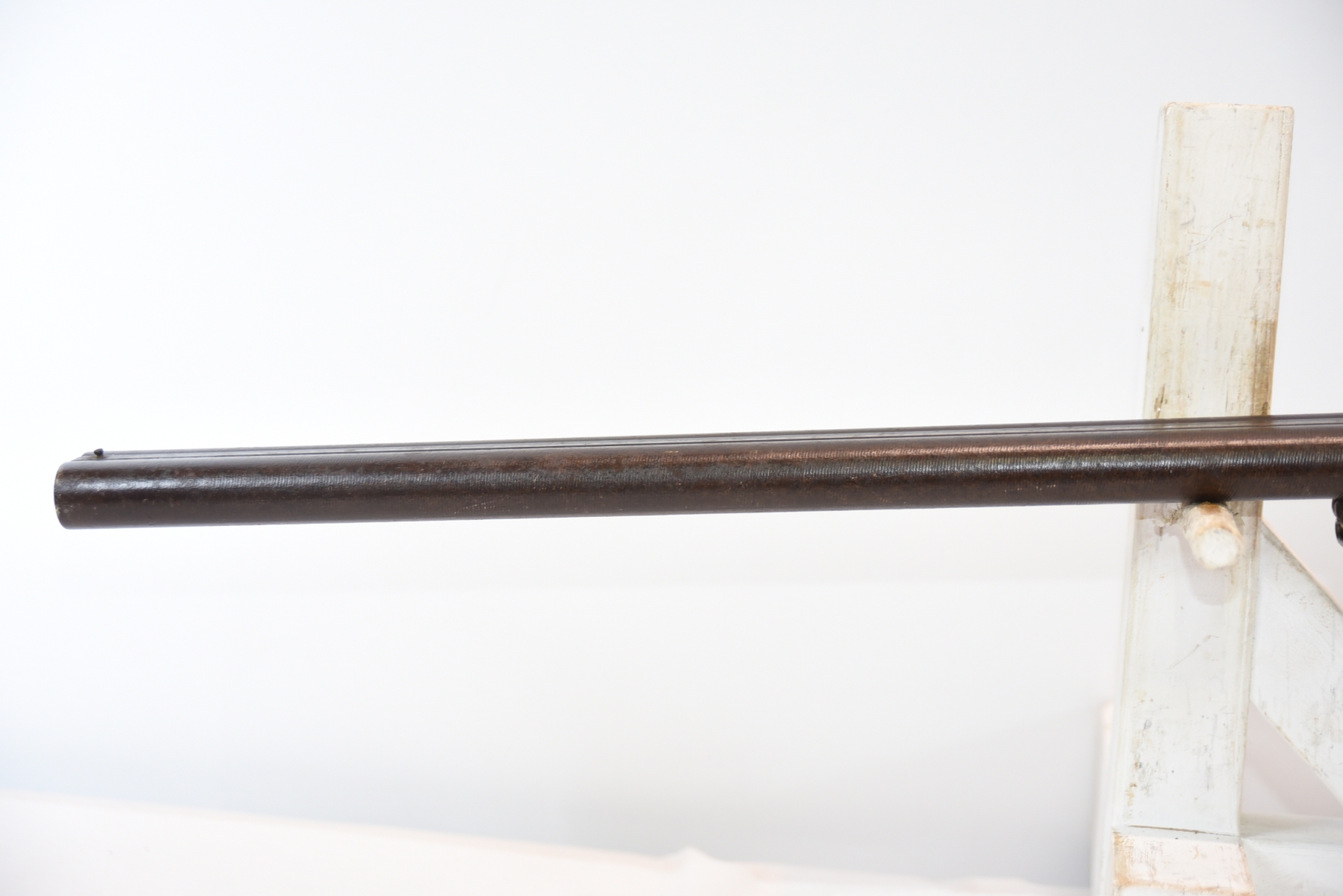 Bore is dark grey with light to medium pitting throughout; condition is poor.