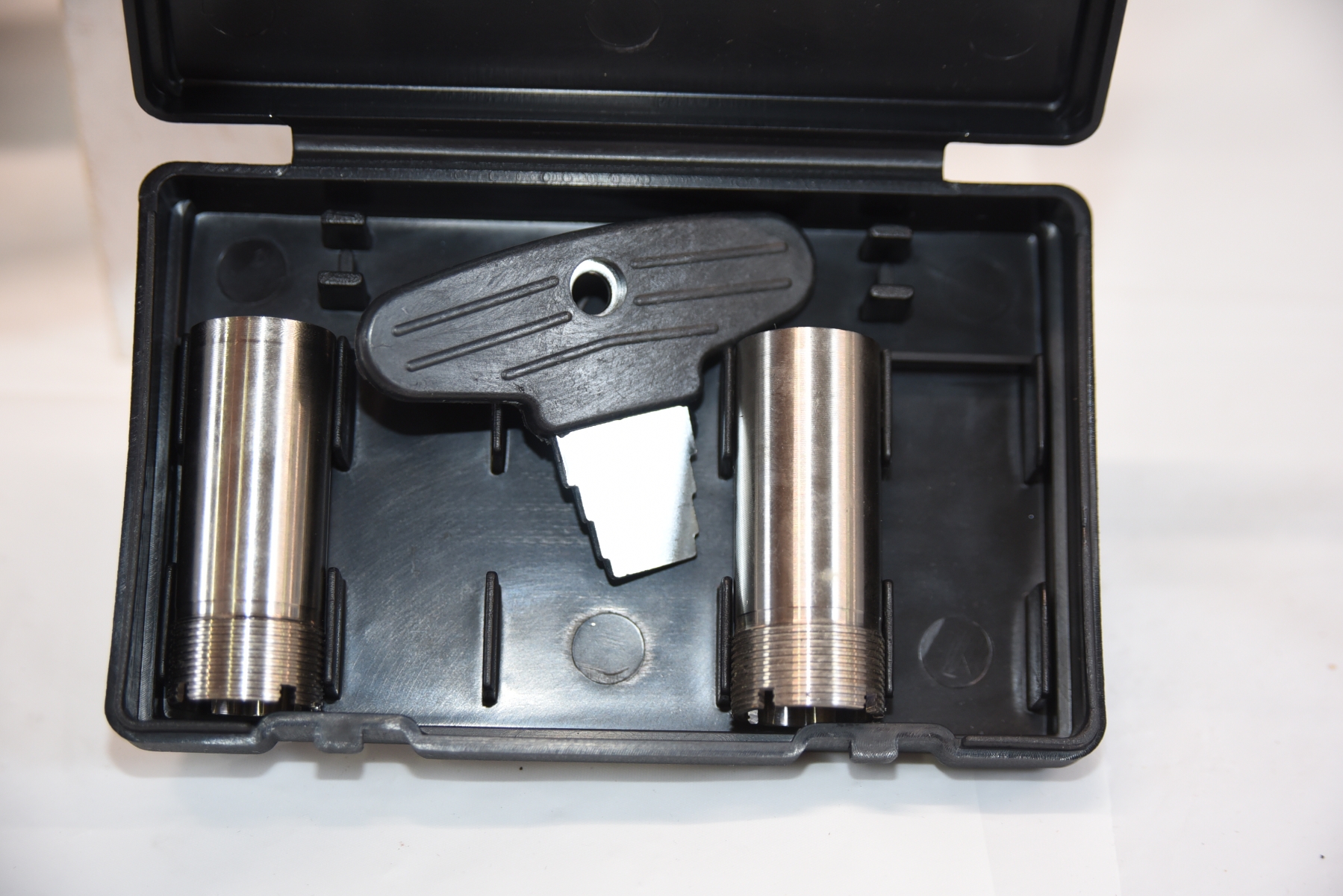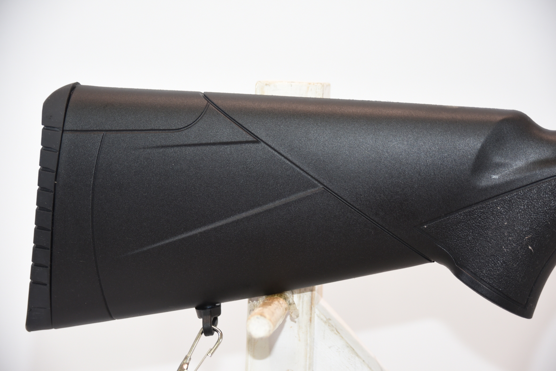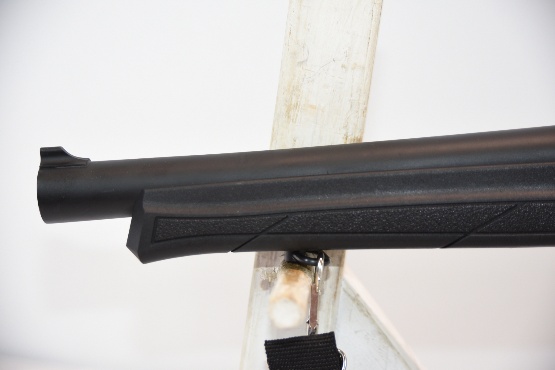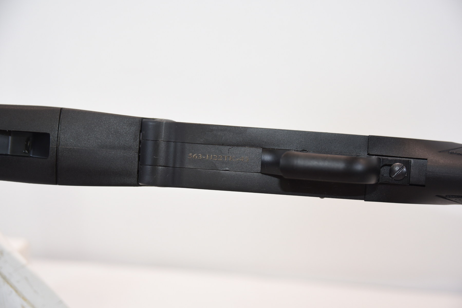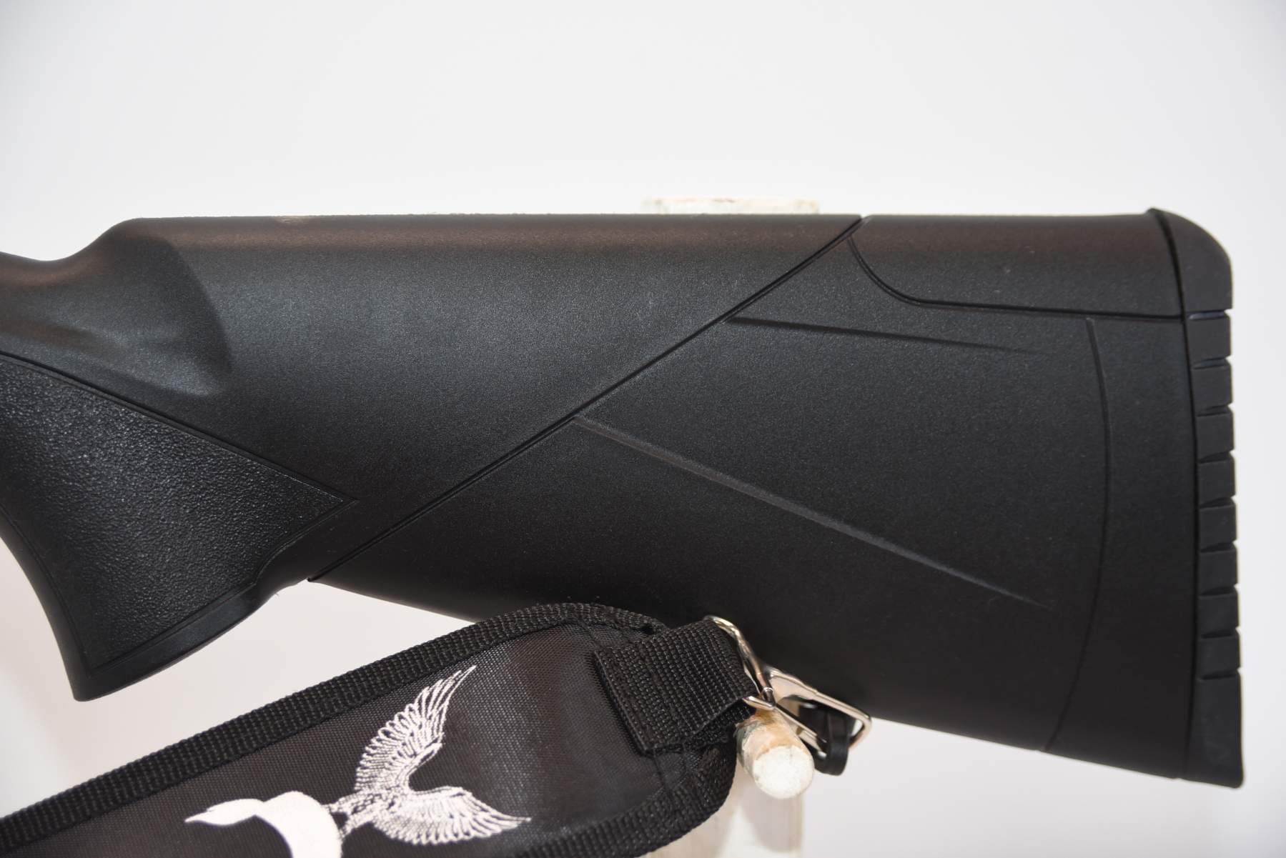 The black synthetic firearm is in like new condition. The matte receiver and bluing is in like new condition. The bore is shiny and smooth. Comes with an improved cylinder and full choke as well as a choke wrench. Comes with box. Has armed sling attached. Has a front sight.