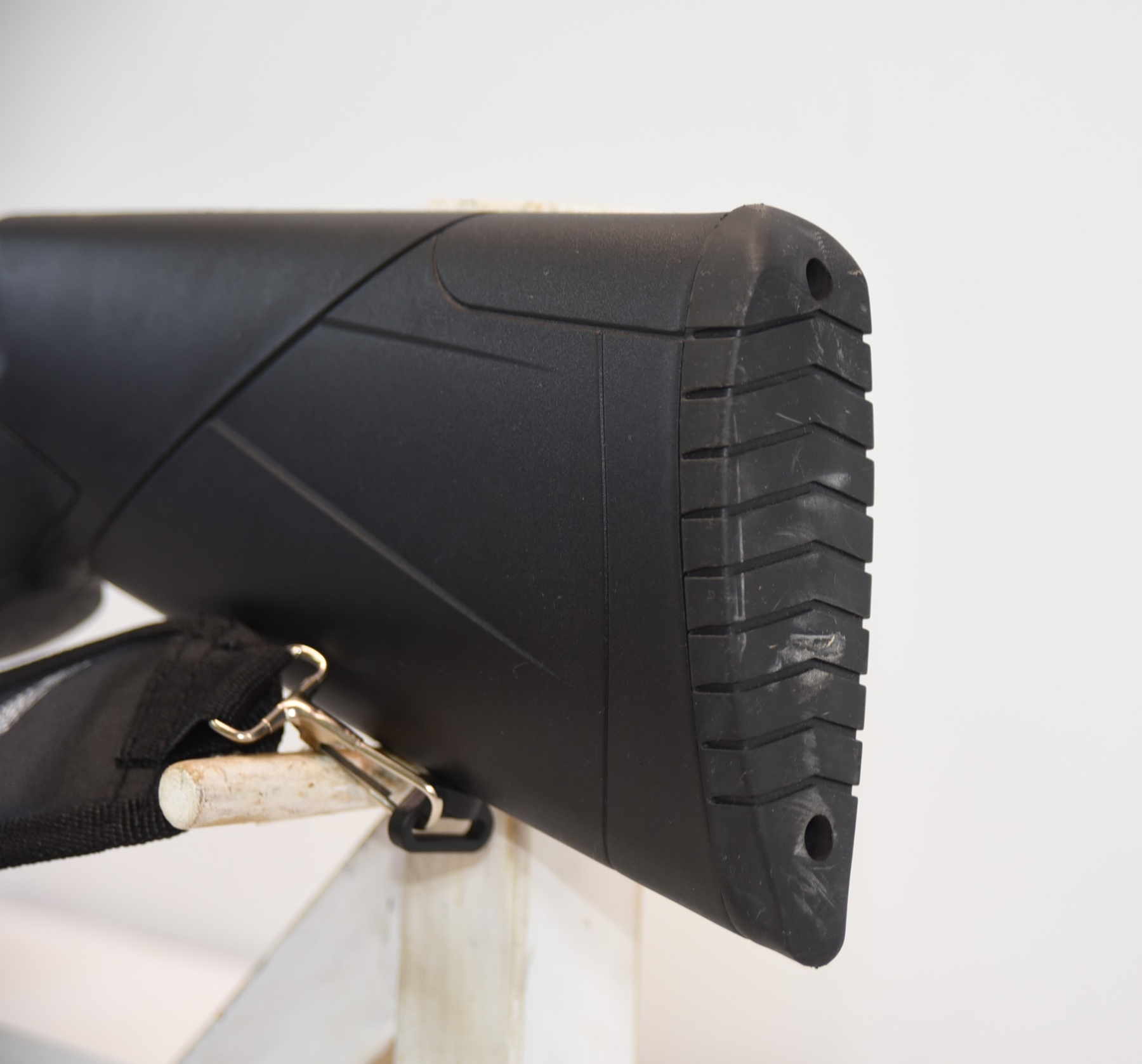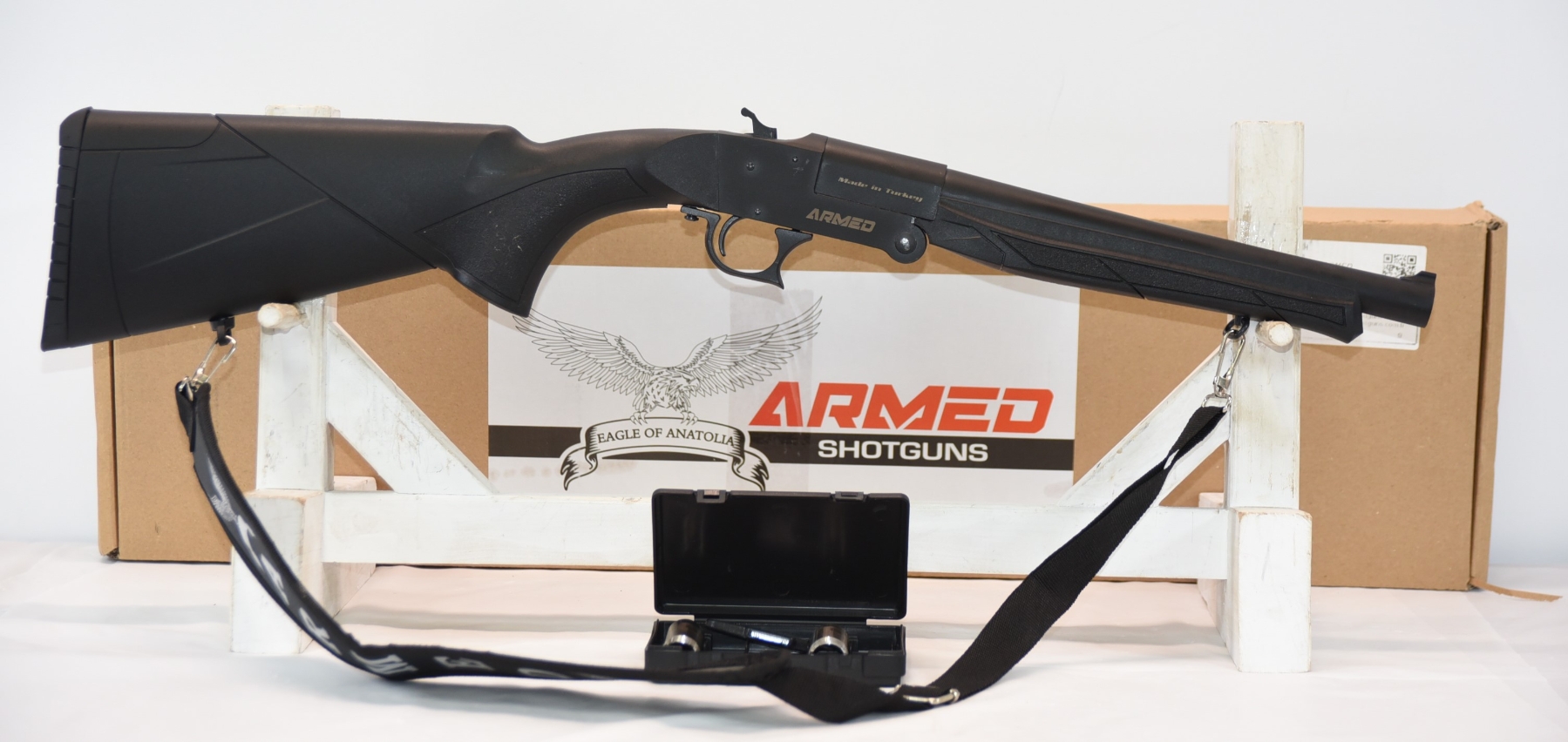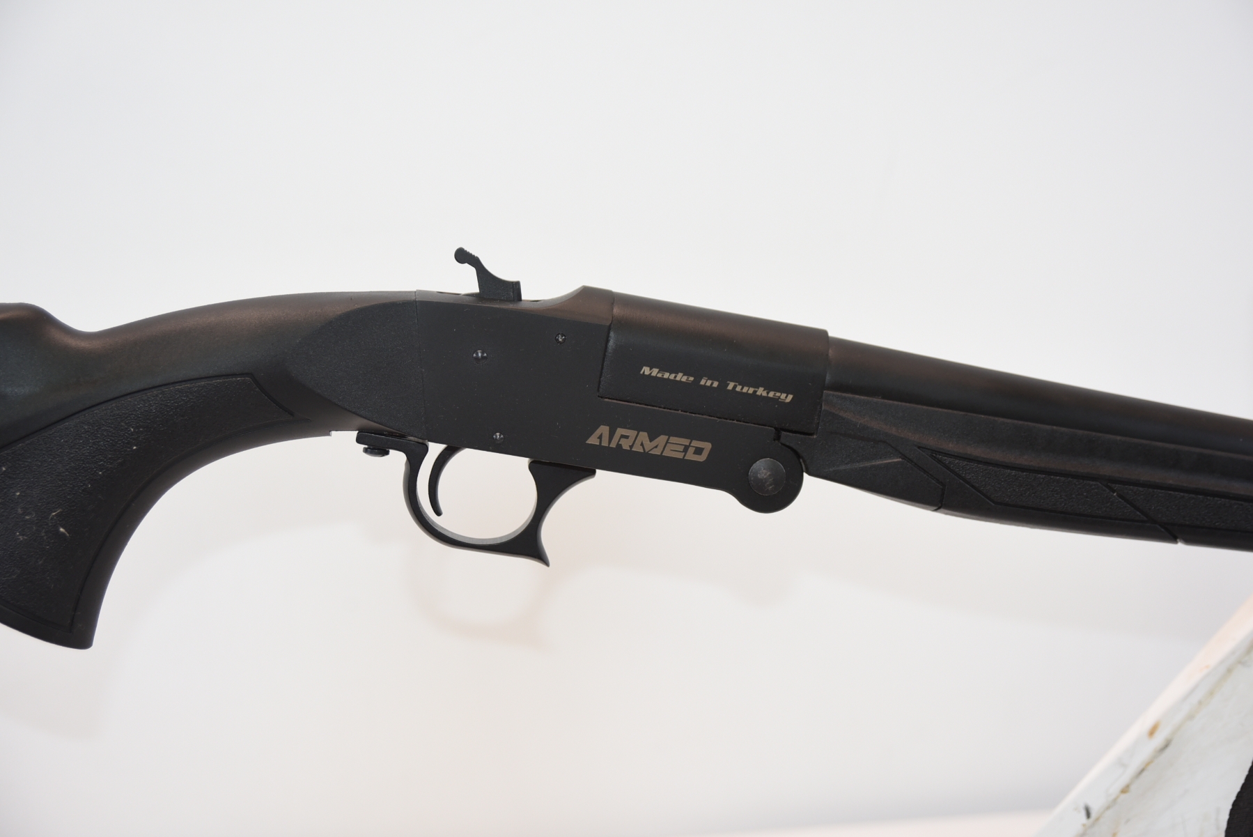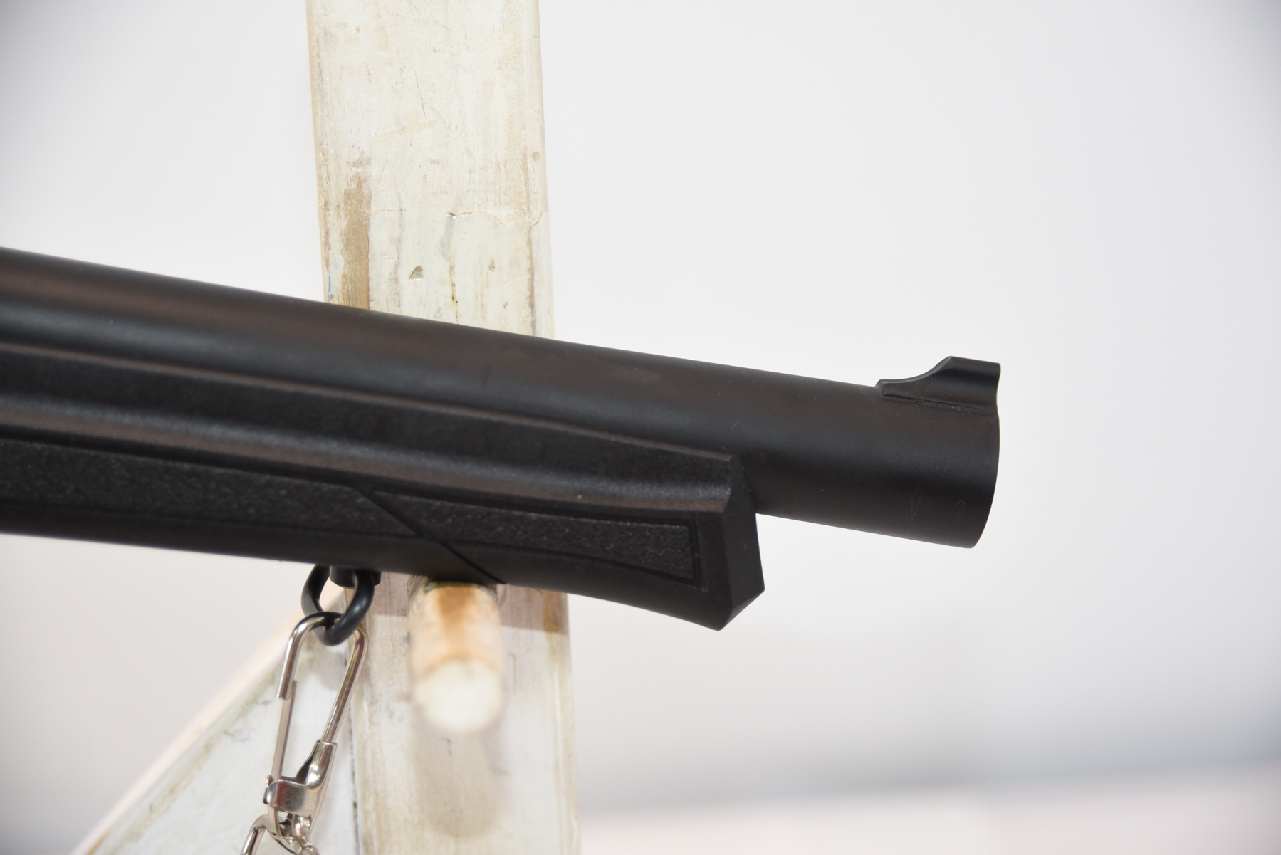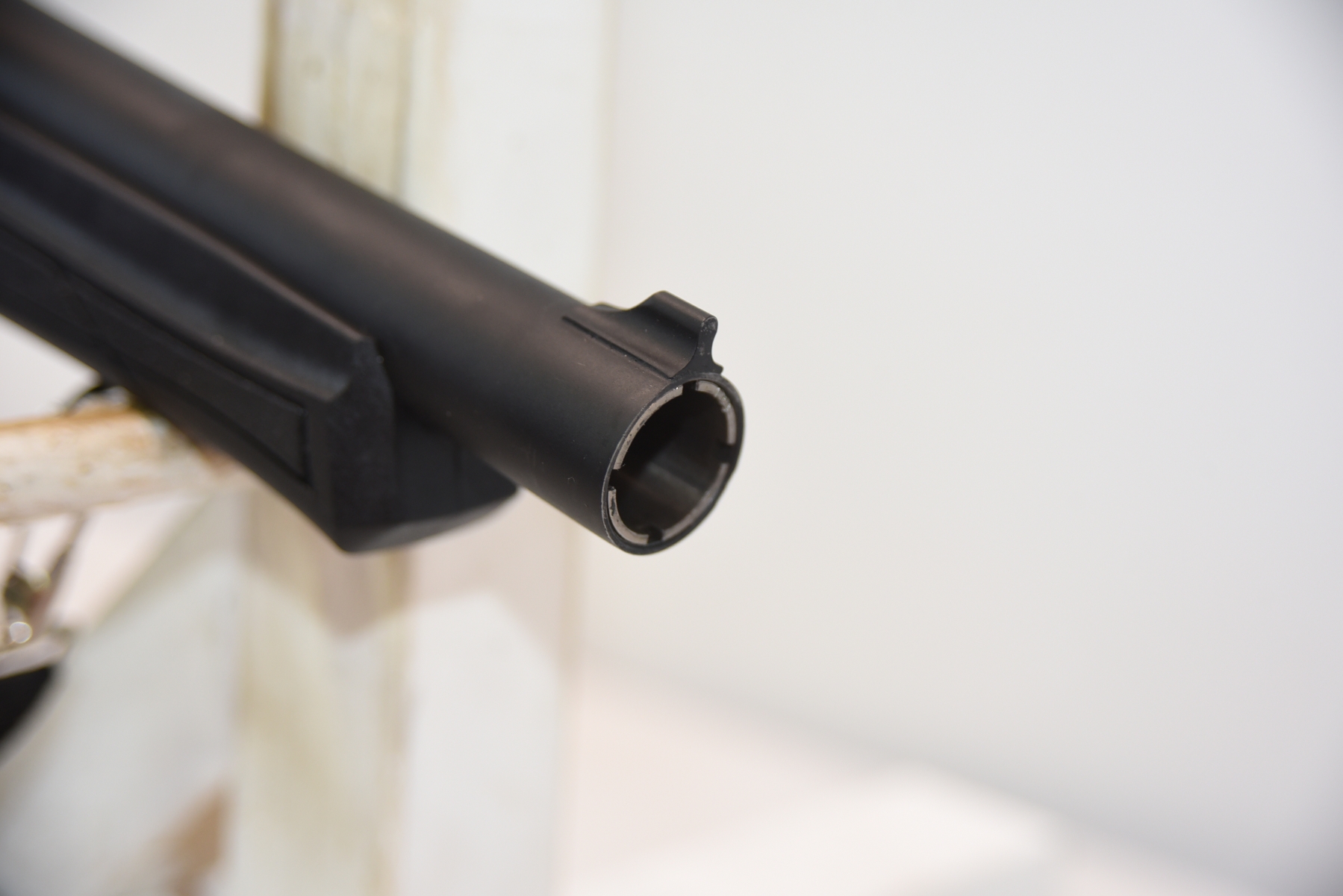The black synthetic firearm is in like new condition. The matte receiver and bluing is in like new condition. The bore is shiny and smooth. Comes with an improved cylinder and full choke as well as a choke wrench. Comes with box. Has armed sling attached. Has a front sight.