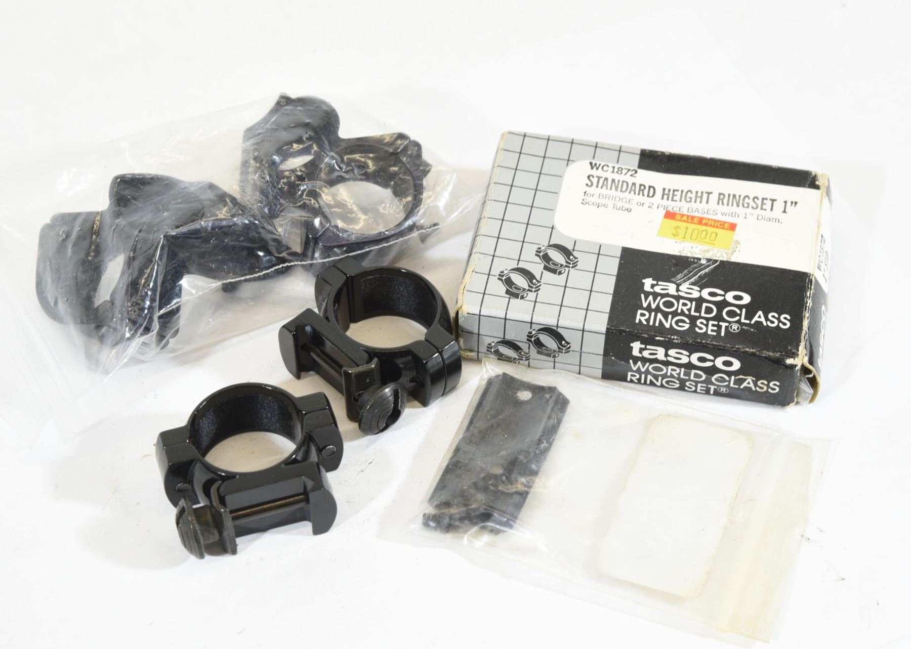 1) 1" rings and bases for BLR and BAR. 2) Tasco World Class 1" set rings. 3) See-through 1" rings.