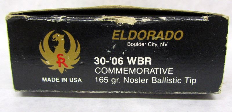 ONE FULL 20-ROUND BOX OF 30-06 AMMO. RARE BILL RUGER COMMEMORATIVE BOX.