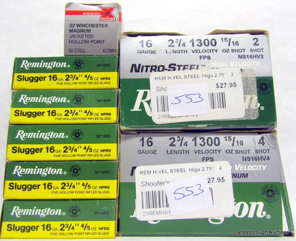 22 RNDS REMINGTON SLUGS; 23 RNDS REMINGTON NITRO STEEL; 14 RNDS WINCHESTER 22 MAG, SOFT GUN CASE.
