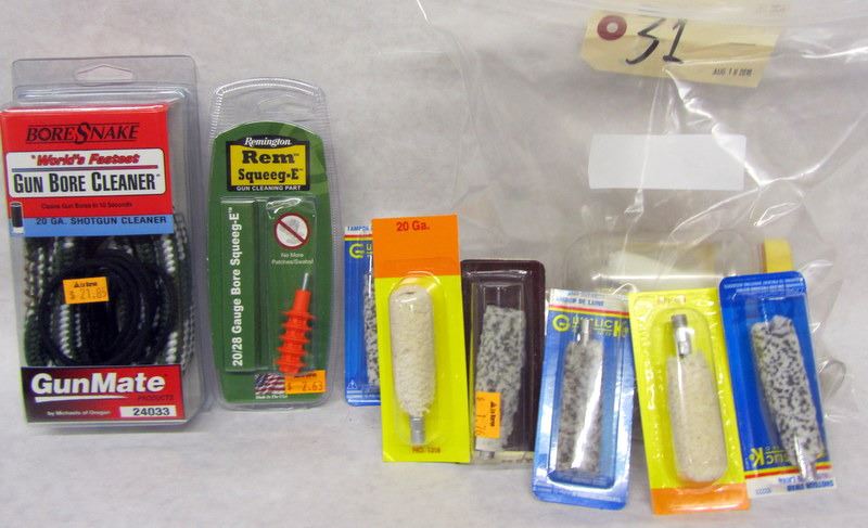 NEW IN BOX BORESNAKE, SQUEEG-E, AND 14 BARREL SWABS.