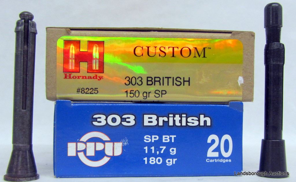 20 RNDS PRVI 303 BRITISH, 20 RNDS HORNADY 303 BRITISH, TWO VINTAGE 303 STUCK CASE REMOVERS.