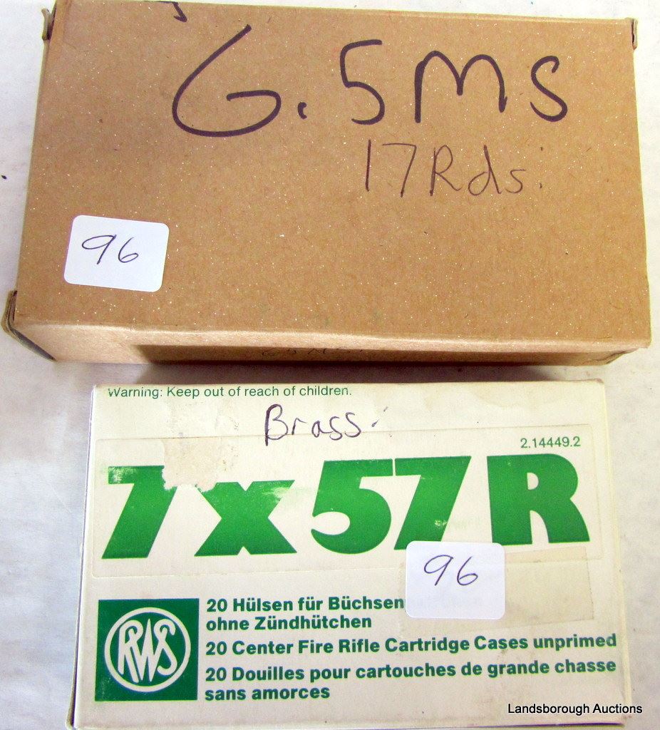7X57R NEW BRASS FROM RWS AND 17 RDS OF 6.5 MS BY DOMINION, 1 ROUND VINTAGE .577/450 AND 9 CASES AND WITH SHELL HOLDER, RCBS 303 BR DIES.