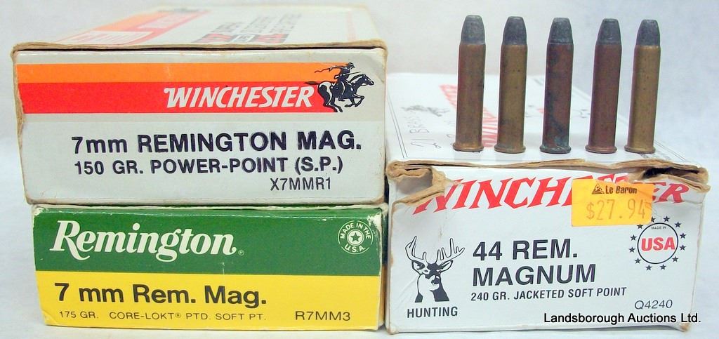5 RNDS 25 STEVENS, 22 RNDS WINCHESTER 44 REM, 40 RNDS WINCHESTER & REMINGOTN 7MM REM MAG.