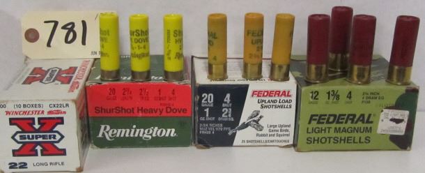 450 RNDS 22 CAL. LR WINCHESTER, 40 RNDS 20 GA. 2 3/4" # 4, 25 RNDS. 12 GA 2 3/4" # 4 LIGHT MAGNUM