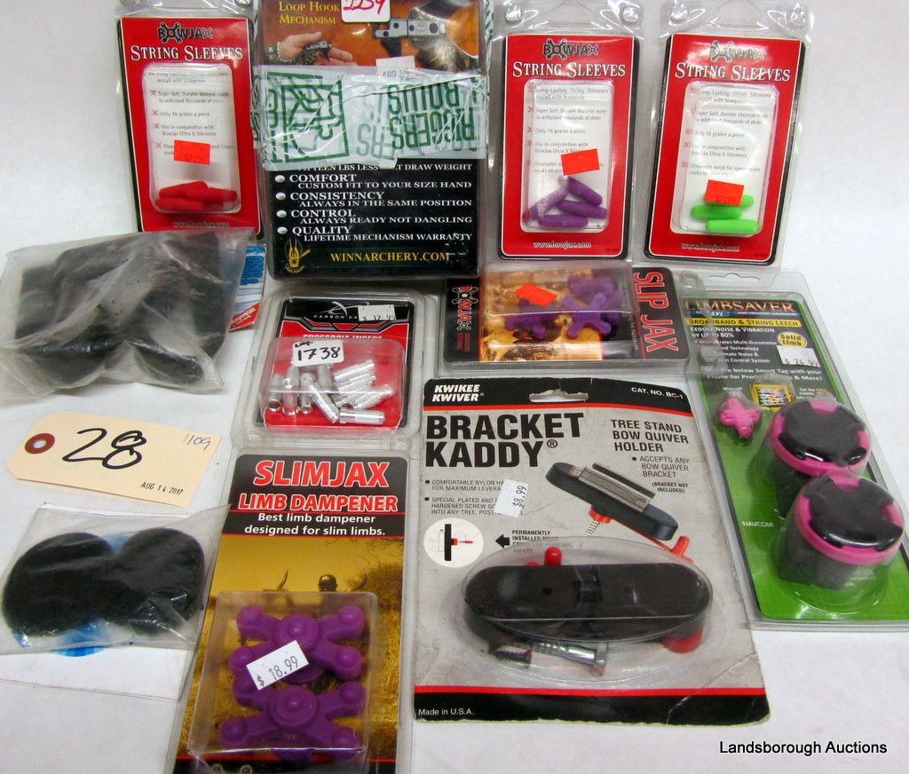 SLIP JAX, STRING SLEEVES, BOWFISHING TRADITIONAL MOUNT BRACKET, BRACKET KADDY, BROADBAND AND STRING LEECH, BUZZ BUSTERS, CROSSBOLT INSERT, AND LOOP HOOK MECHANISM