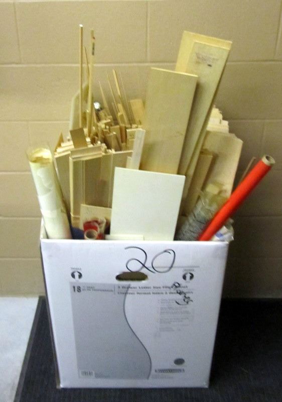 LARGE BOX OF ASSORTED WOOD PLANE-BUILDING MATERIALS.