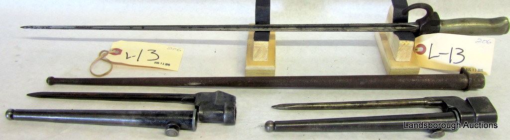 2 ENFIELD SPIKE BAYONETS. 25.5 INCH QUADRANGULAR BAYONET, UNKNOWN ORIGIN