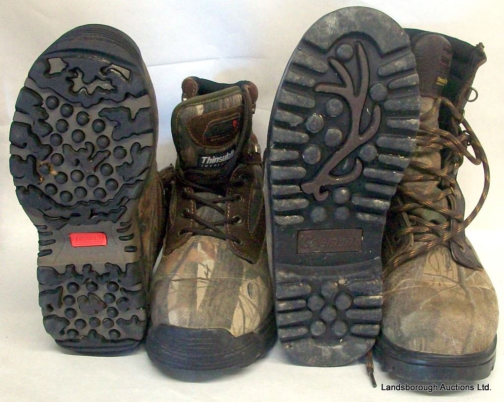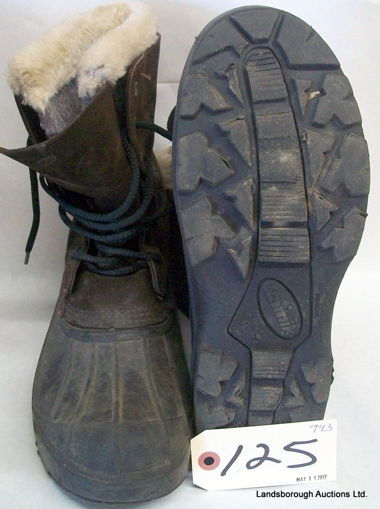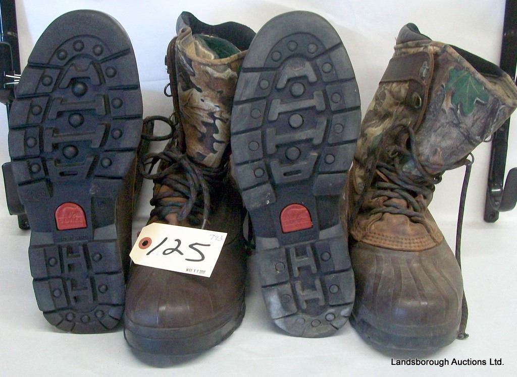 FOUR NEW LINERS SIZE 10, TWO PAIR SOREL RUBBER LOWERS GORETEX UPPER SIZE 10, KAMIK SIZE 8.