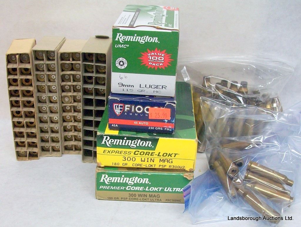 66 PCES 9MM LUGER, 68 PCES 22-250 REM, 11 PCES 250 SAVAGE, 40 PCES 45 ACP, 74 PCES 300 WIN MAG.