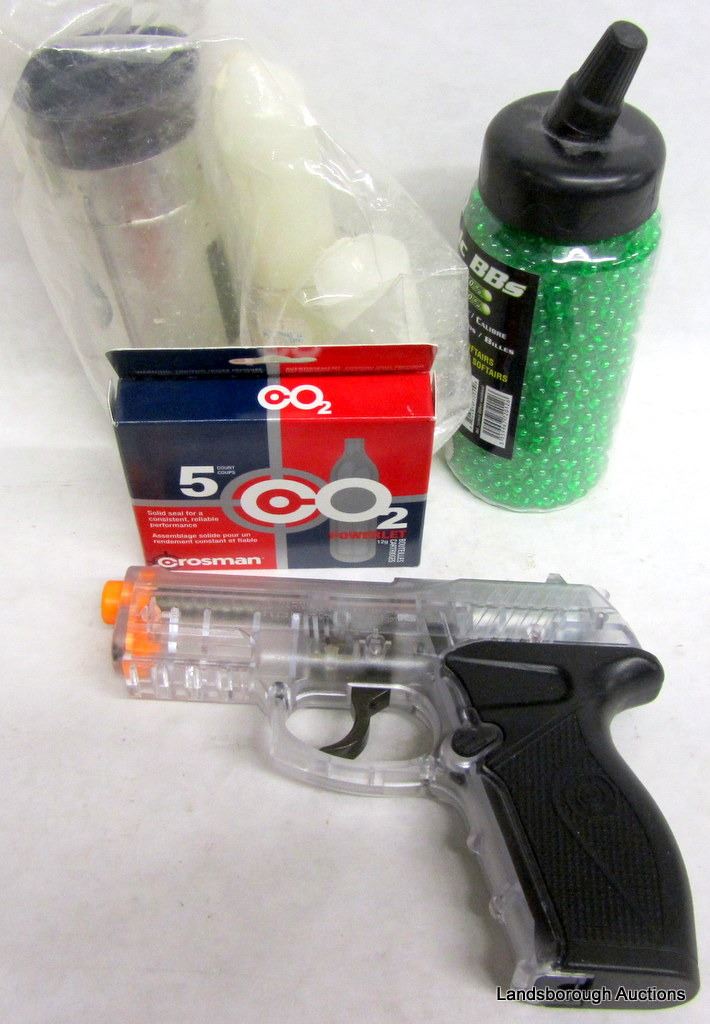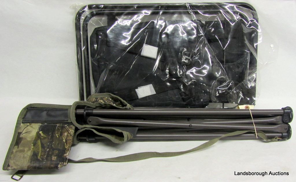 2 FOLDING CHAIRS, 5 CROSMAN 12 GRAMS,1 BOTTLE OF ULTRASONIC BBS, 1 AIR MAG C11, 1 THE ORIGINAL CANDLE LANTERNS, 2 TRI PODS FOR CAMERA