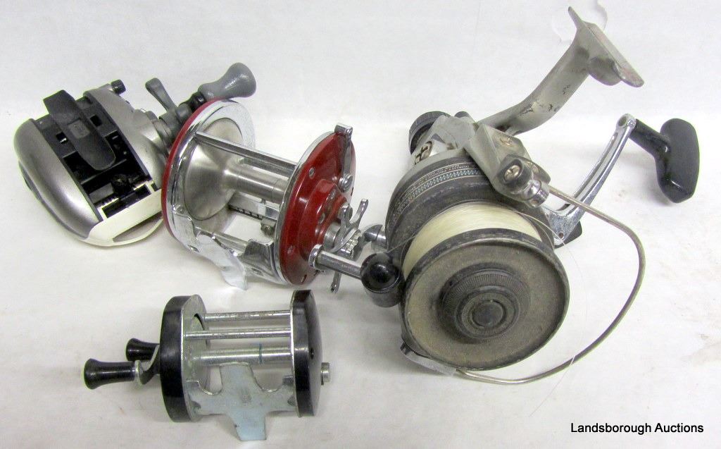 1 TACKLE BOX, VARIOUS TACKLE, 5 KEY CHAINS, 4 REELS