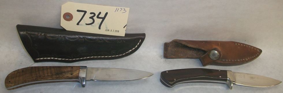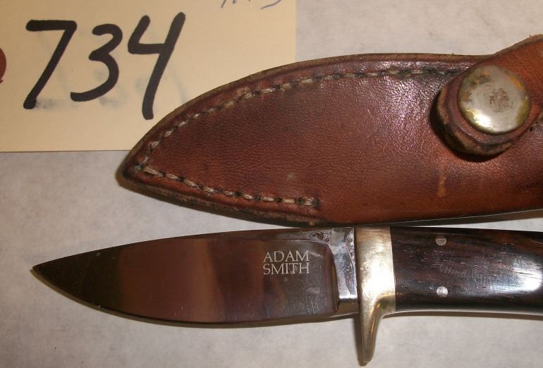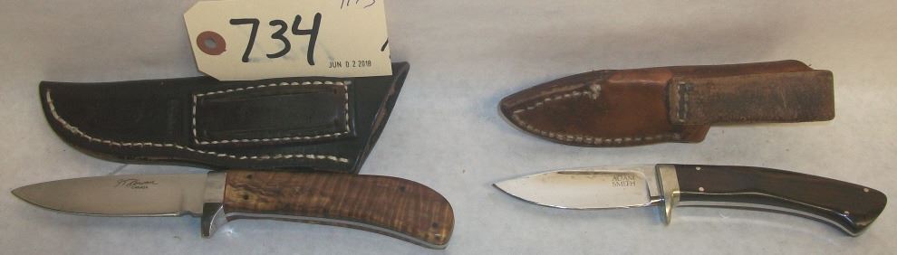 ADAM SMITH CKCC KNIFE 3" BLADE & LEATHER SHEATH, J.T. DOWNIE KNIFE 4" BLADE & LEATHER SHEATH