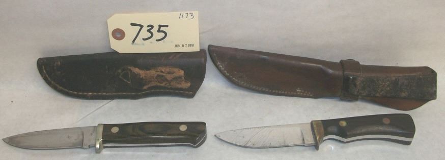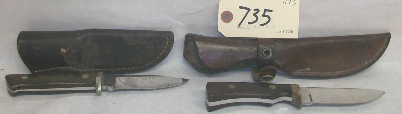 ONE KNIFE BY MUSTOS AND ONE KNIFE BY L.C. BOTH ARE USED AND SCRATCHED