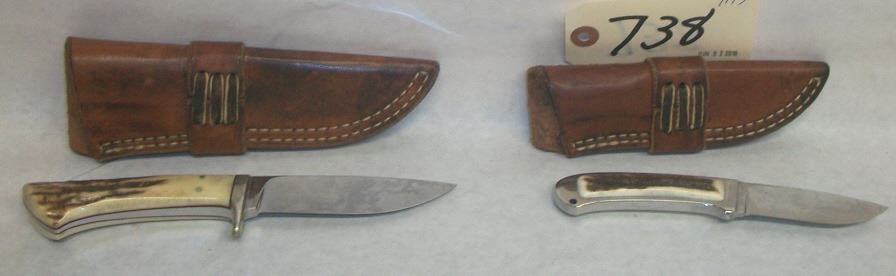 TWO KNIVES BY TOWELL, 1 HAS A 3" BLADE & 1 HAS A 4 " BLADE AND A BONE HANDLE
