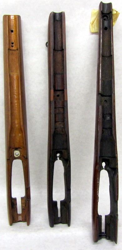 TWO BUTTSTOCKS, THREE SPORTER FORESTOCKS. IN VARYING CONDITION, BUT ALL APPEAR SERVICABLE.