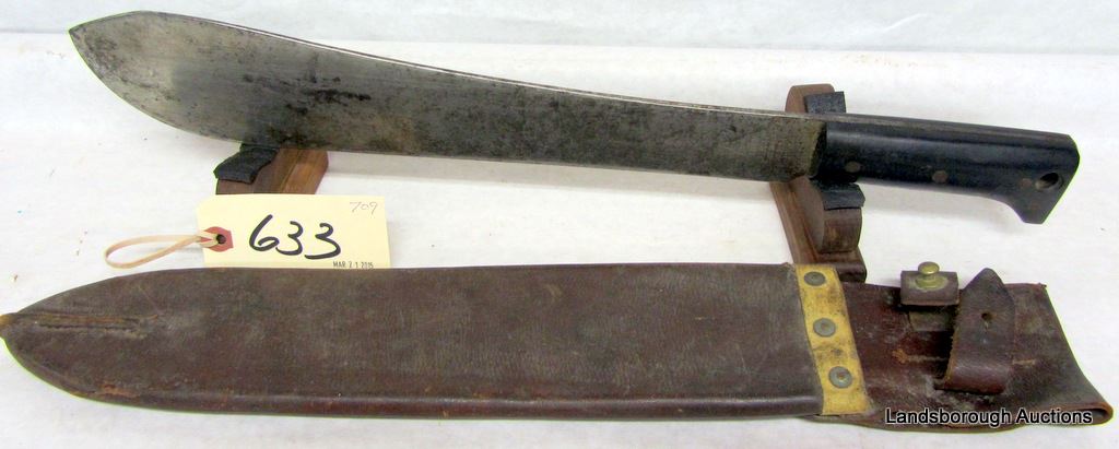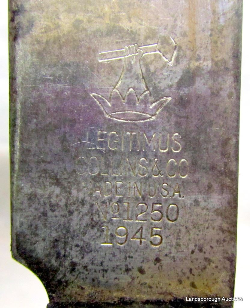 LEGITIMUS COLLINS & CO MACHETE NUMBER 1250 DATED 1945. COMES WITH LEATHER SHEATH AND BRITISH WW2 MILITARY KNIFE.