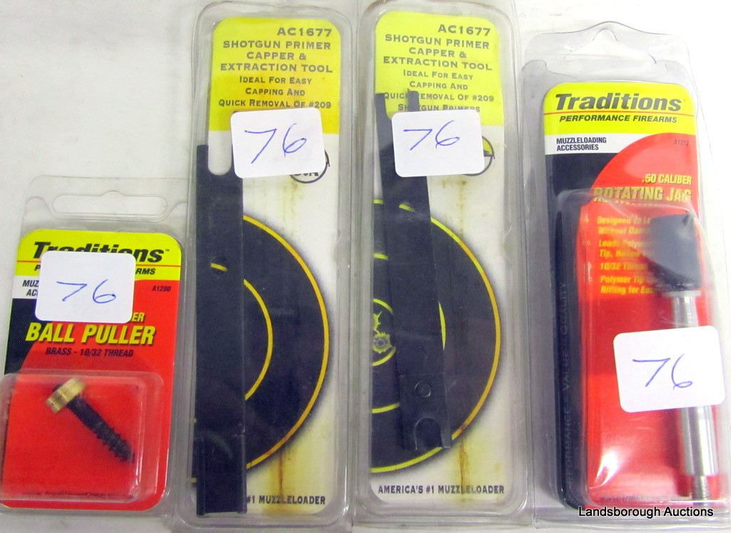 PRIMER/EXTRACTION TOOLS, BALL PULLER, AND .50 CAL ROTATING JAG.