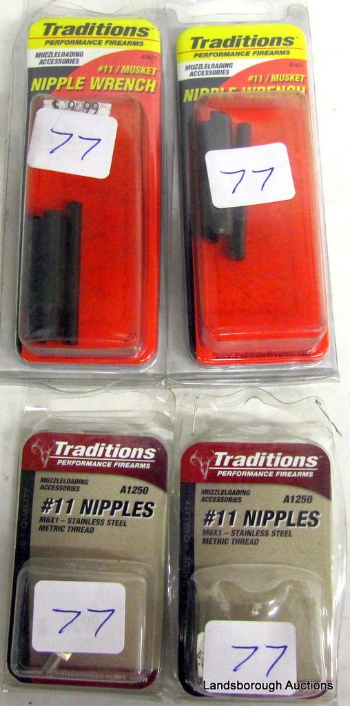 TWO PACKS EACH OF TRADITOINS #11 NIPPLES, WITH WRENCHES.