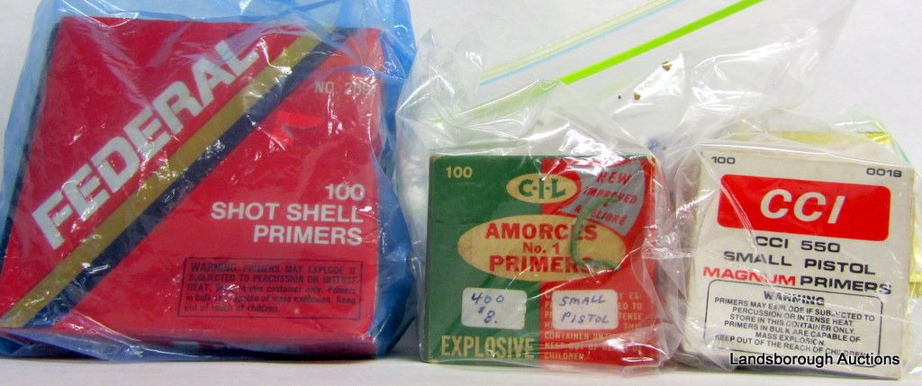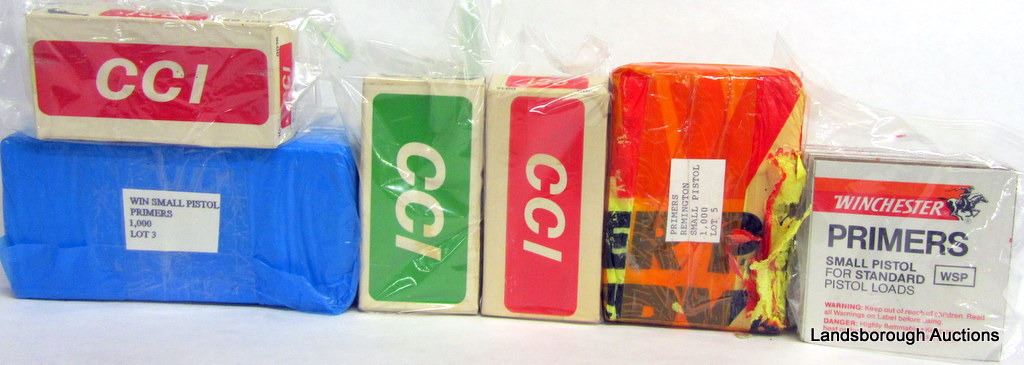 OVER 6000 CCI, WINCHESTER, REMINGTON SMALL PISTOL PRIMERS AND 400 WINCHESTER AND FEDERAL 209 PRIMERS.