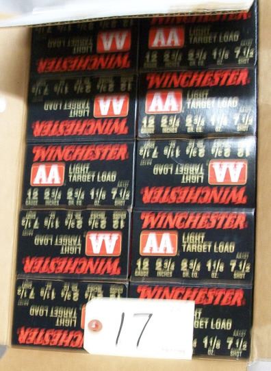 25 LBS USED 12 GA. 2 3/4" WIN. AA HULLS, 2 CONTAINERS OF 12 GA. WADS, 10 EMPTY WIN AA # 7 1/2 BOXES