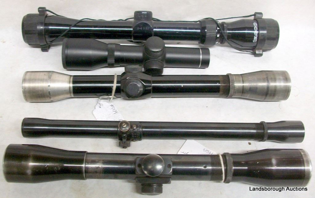LYMAN CHALLENGER, LYMAN ALL AMERICAN, TASCO 3-9 X 32, TASCO BANTAM 2.5 X 20, WEAVER J4.