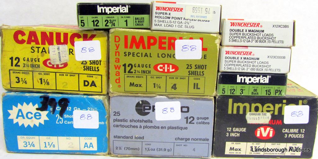 46 RNDS CIL 16GA X 2 3/4"; 144 RNDS IMPERIAL, PRAGO, ACE, CANUCK 12GA X 2 3/4"; 40 RNDS IMPERIAL AND WINCHESTER 12GA X 3".