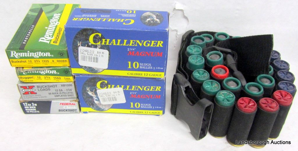 10 RNDS REMINGTON RIFLED SLUGS 12 GA, 5 RNDS SUPER X 00 BUCK 12 GA, 5 RONDS FEDERAL CLASSIC 12 GA, 19 RNDS CHALLENGER MAGNUM 12 GA, 25 RNDS VARIOUS SHELLS 12 GA