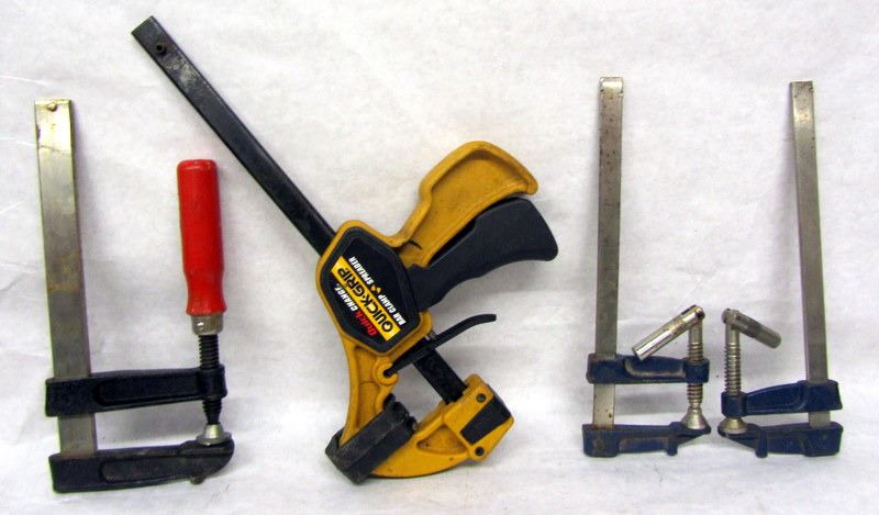 SKIL VARIABLE SPEED DRILL. 4 F-CLAMPS. 5 SIZE GAUGES. PIPE FLARING TOOL. RULER