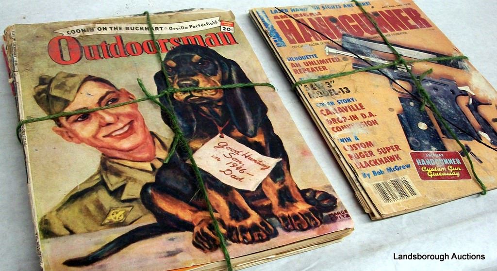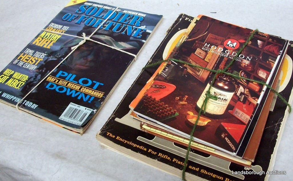 VARIOUS MAGAZINES INCLUDING VINTAGE EDITIONS. INCLUDES HAND LOADERS DIGEST, 13 COPIES AMERICAN RIFLEMAN, OUTDOORSMAN, SURVIVAL, SMALL ARMS, SOLDIER OF FORTUNE, SHOOTING TIMES ECT.