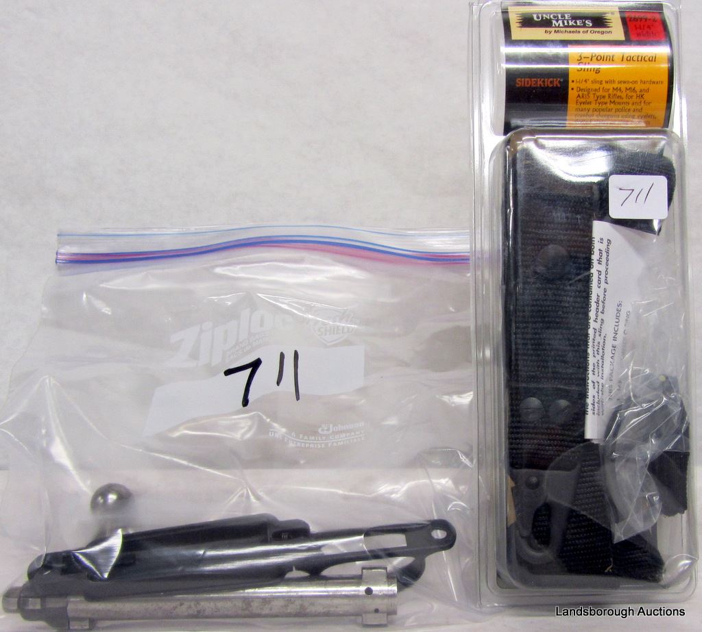 FOUR HOLSTERS, UNCLE MIKES TACTICAL 3PT SLING, REMINGTON 700 BOLT AND FLOOR PLATE.
