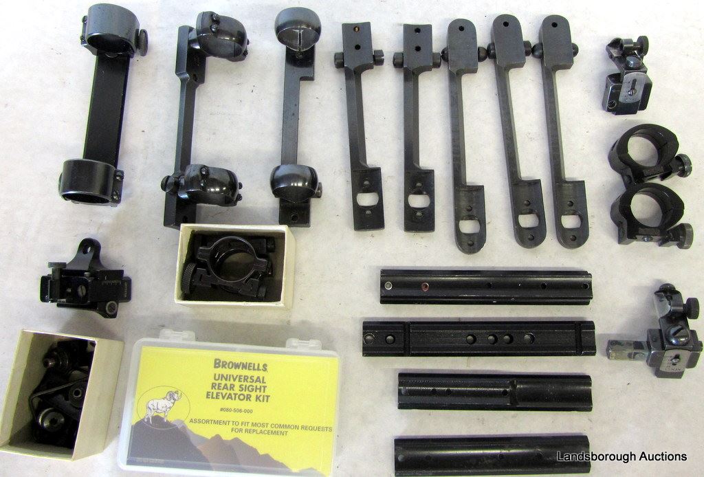 BASES, SLING SWIVELS, SIGHT ELEVATORS, CLEANING KIT, SHOTGUN BRUSHES, PEEP SIGHTS.