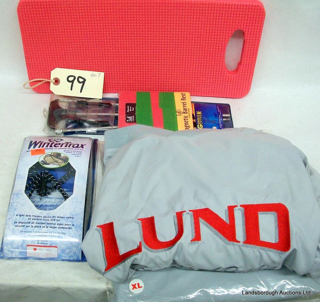 KNEELING PAD, WINTERTRAX BY YAKTRAX, GUNSLICK CLEANING ROD, MAGNETIC BARREL REST, TWO LUND SWEATSHIRTS MENS XL.