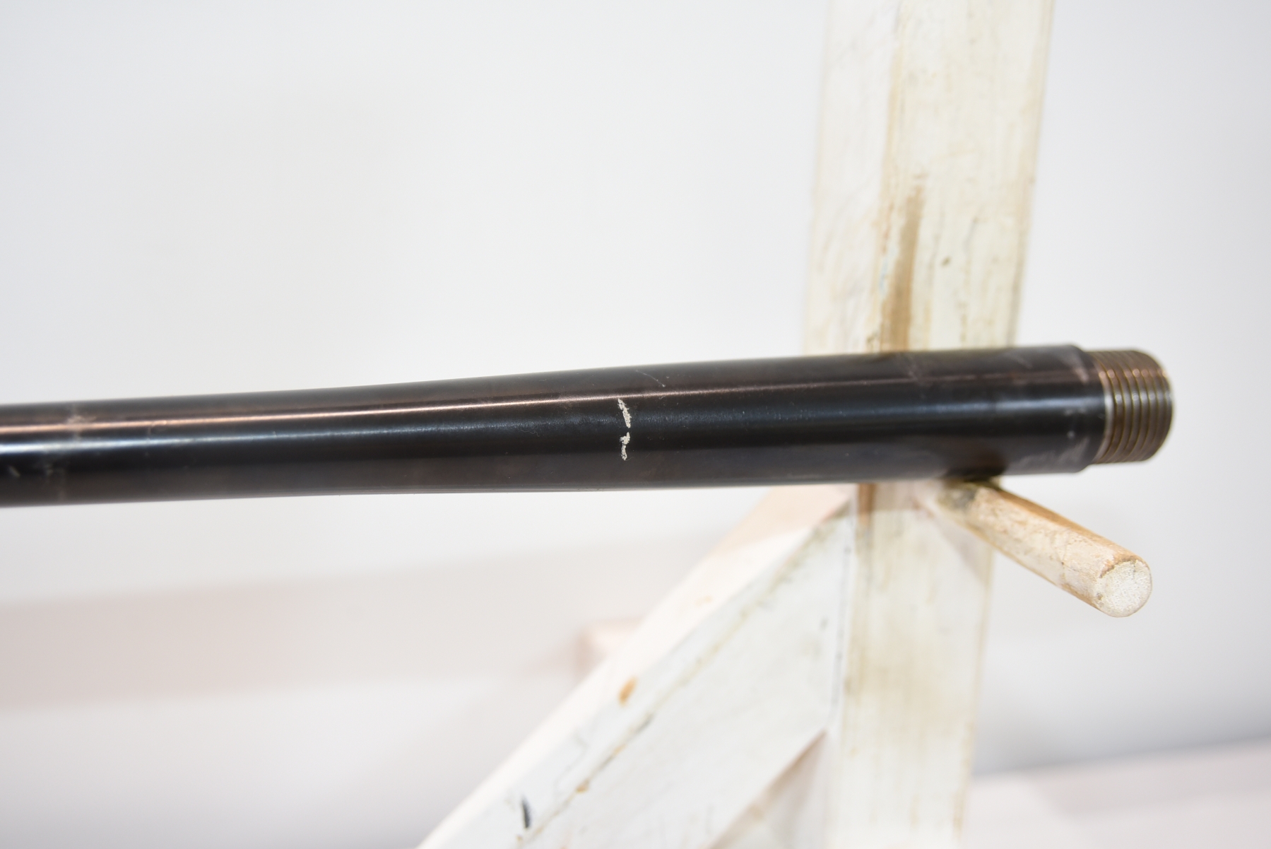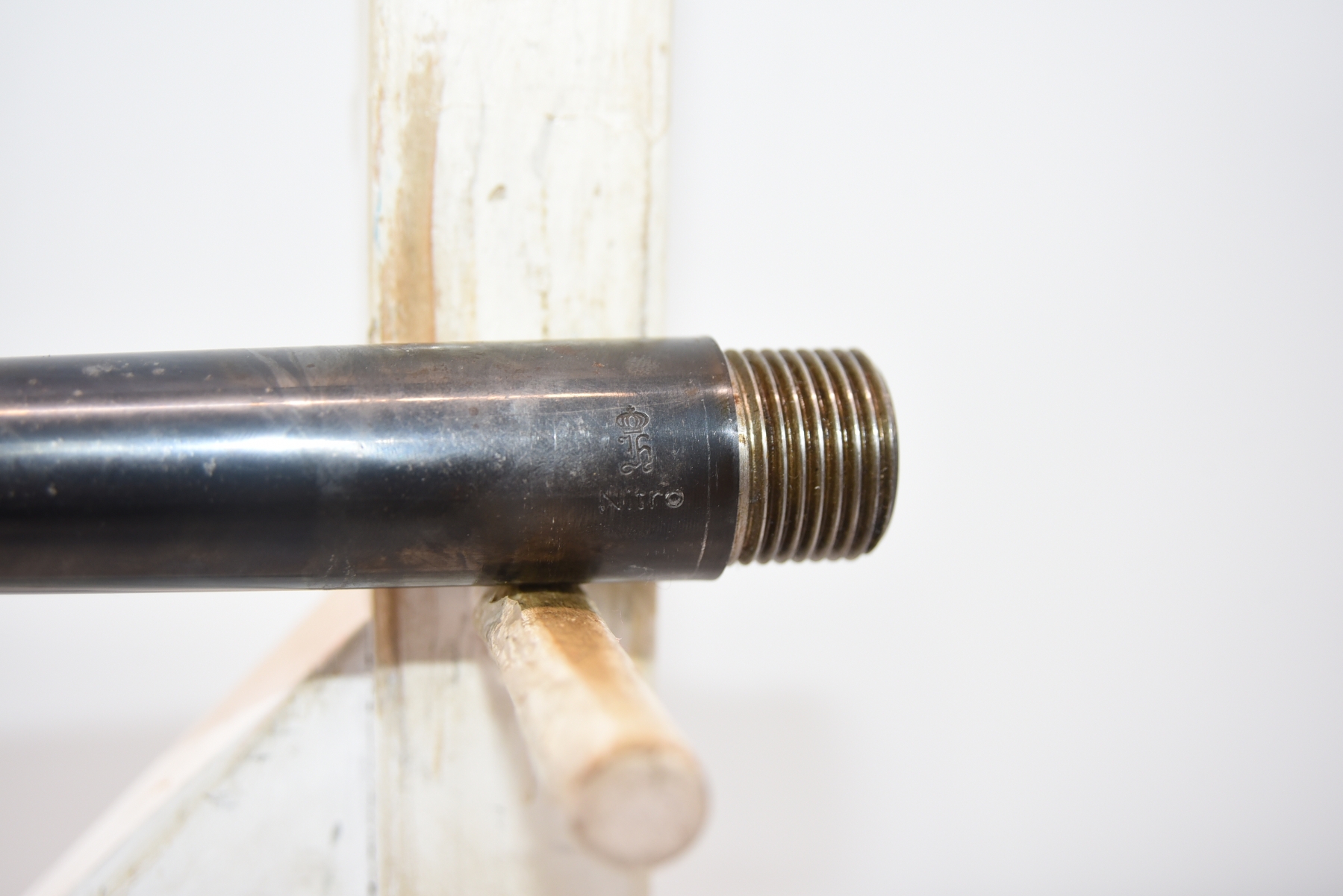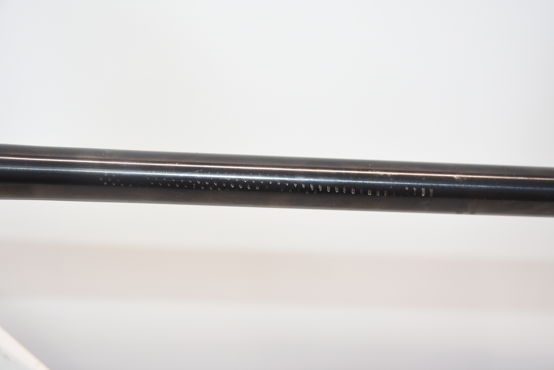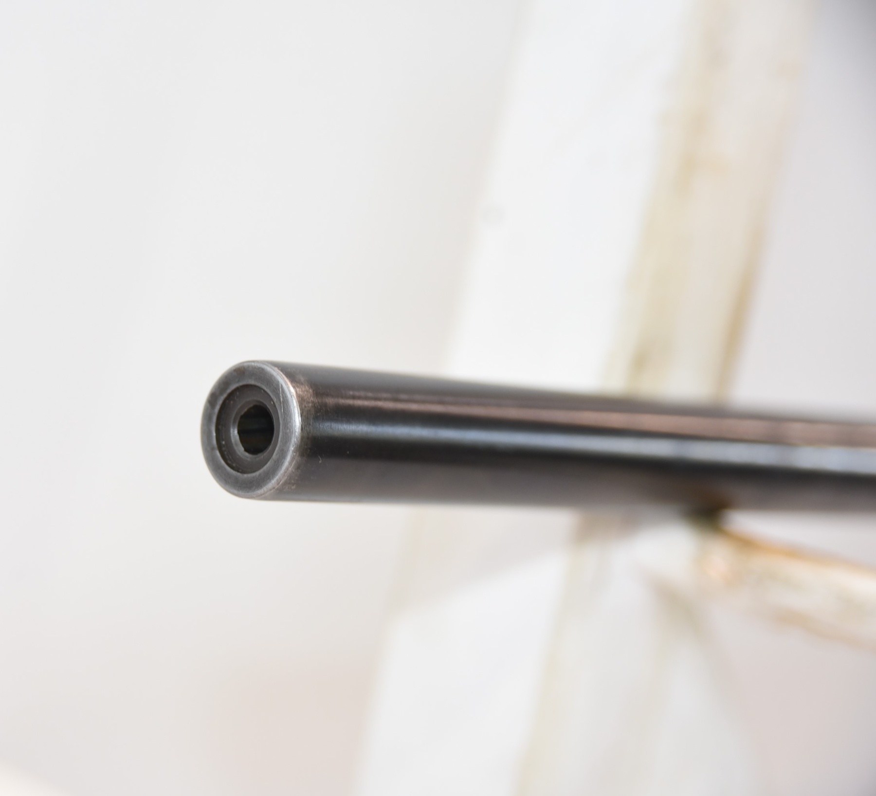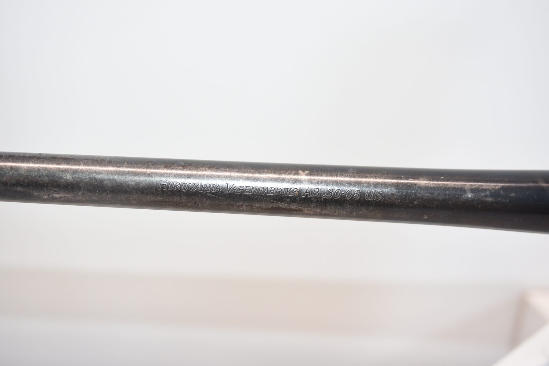 Husqvarna Model 1900 Barrel In 30-06 US Caliber. Barrel Length: 23.5". Bore is shiny, smooth with very good rifling. Metal finish shows worn finish, scratches, scuffs, finish wear, front sight hood is missing.